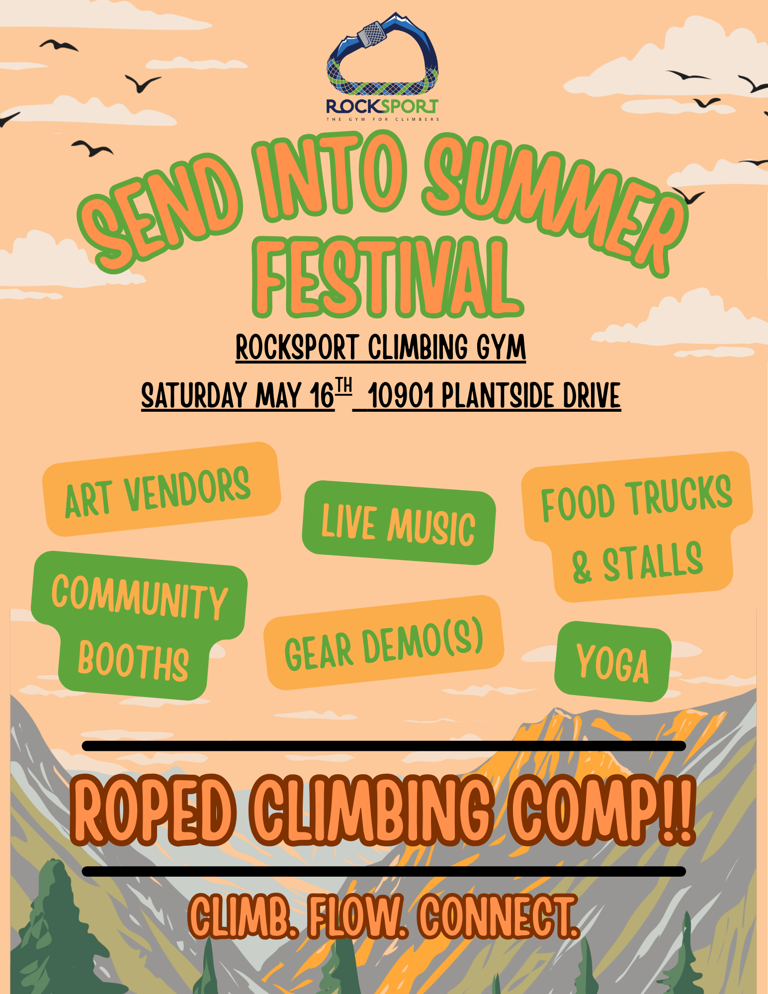 Is a Pre-Summer Community Festival put on by Rocksport Climbing Gym in Jtown featuring 10,000 sq ft of festival grounds with art vendors, community booths, food trucks & stalls, live music, yoga and more!